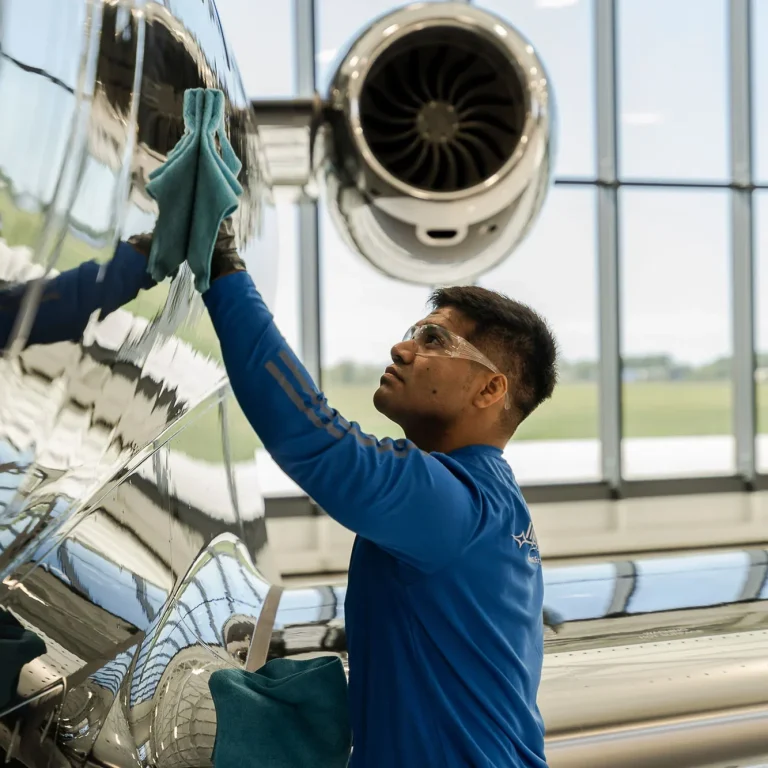 Die Außenhaut eines Flugzeugs ist täglich extremen Belastungen ausgesetzt – UV-Strahlung, Temperaturwechsel, Schmutz, Feuchtigkeit und Ölrückstände. Mit unserer professionellen Oberflächenbehandlung schützen wir Ihr Flugzeug langfristig, verbessern die Optik und erleichtern zukünftige Reinigungen.